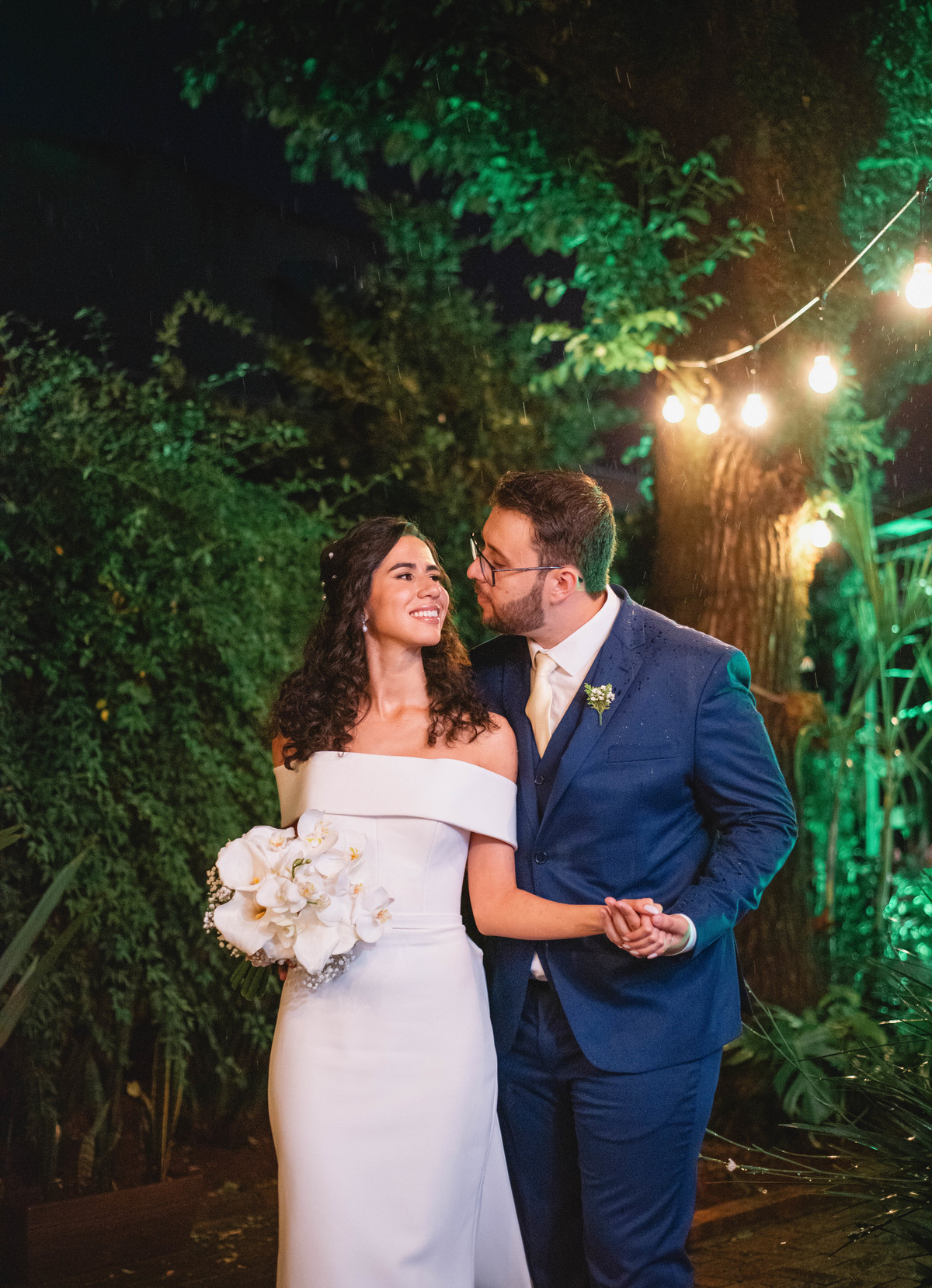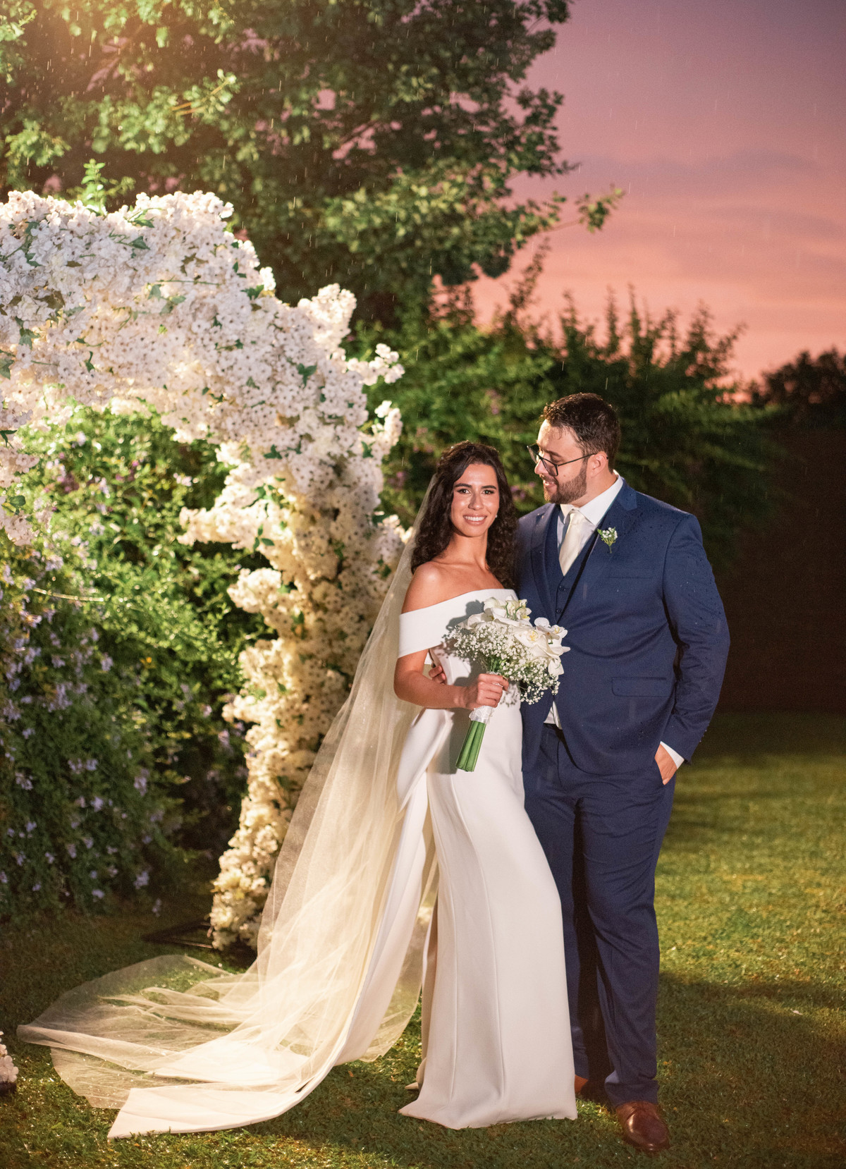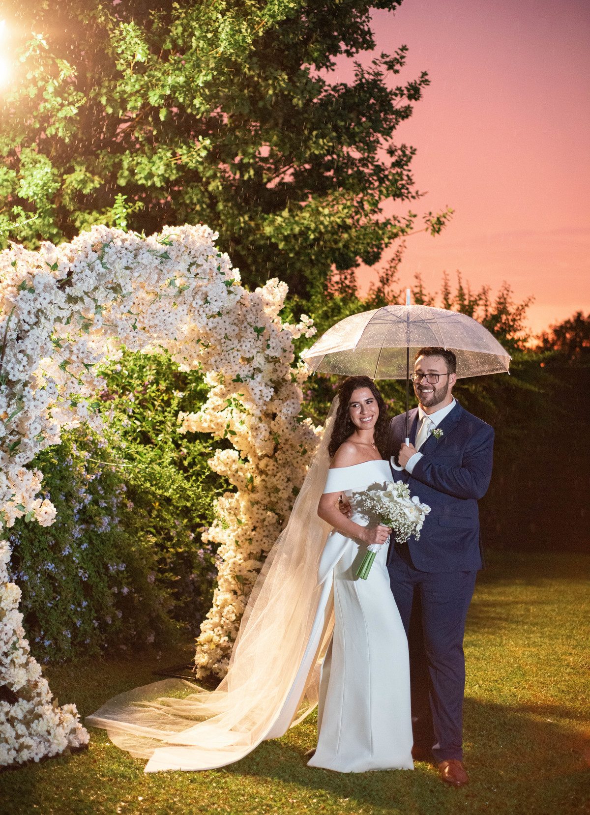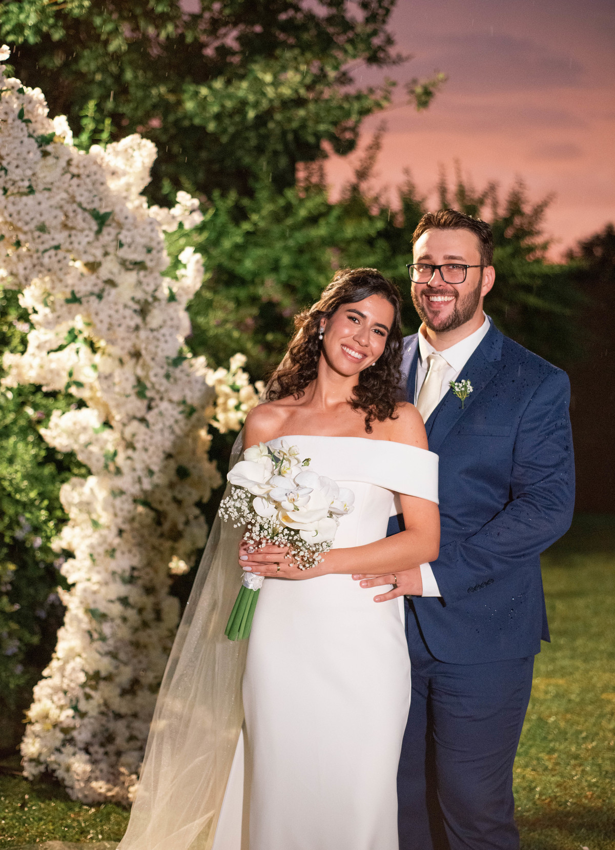 O casamento estava marcado ao ar livre, com o pôr do sol que eles tanto sonhavam, porém Deus quis uma chuva de bênçãos para eles.